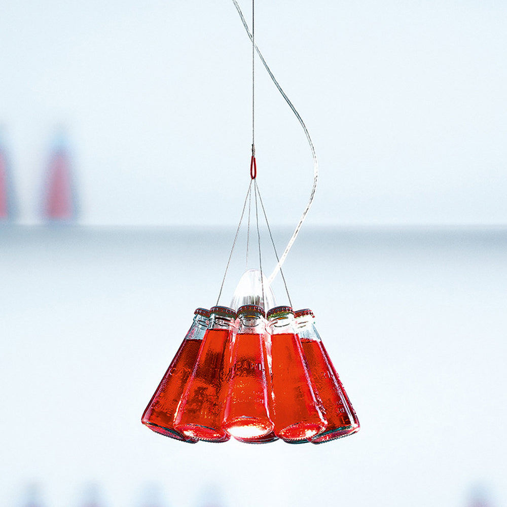 Lámpara de suspensión 10 Botellas Campari Soda, plástico, metal.