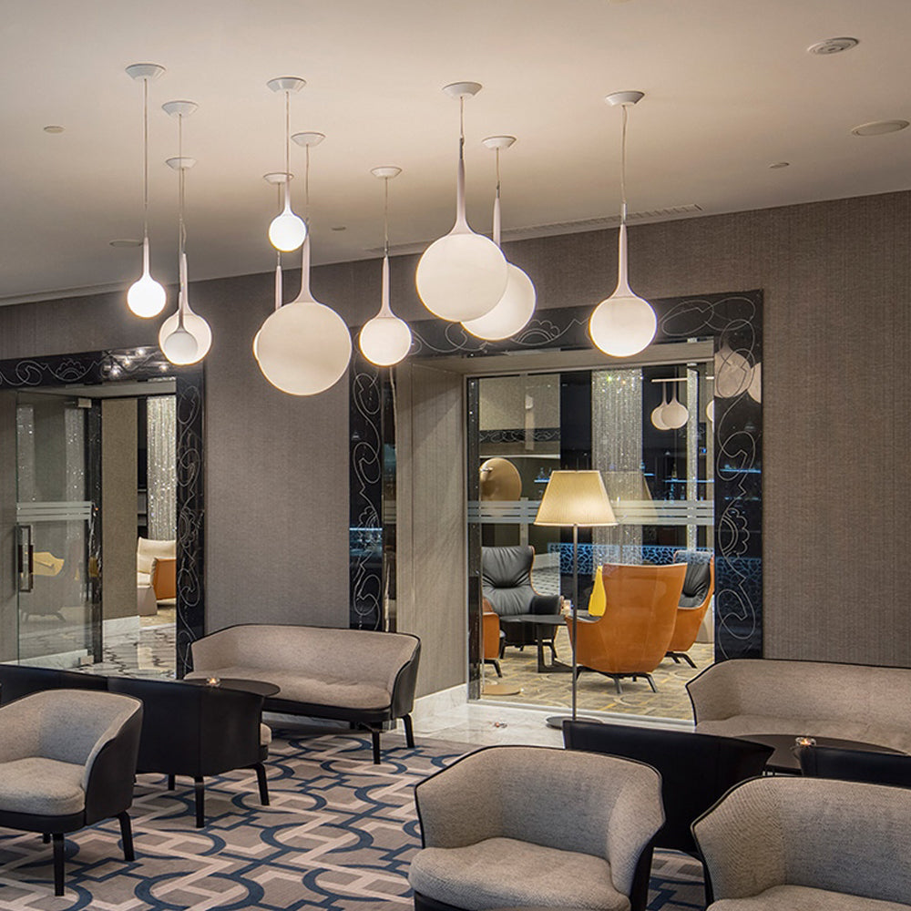 Lámpara de suspensión, cristal arenado blanco de 25 cm de Diámetro, halógeno 77W E-27 o led retrofit 15W E-27.