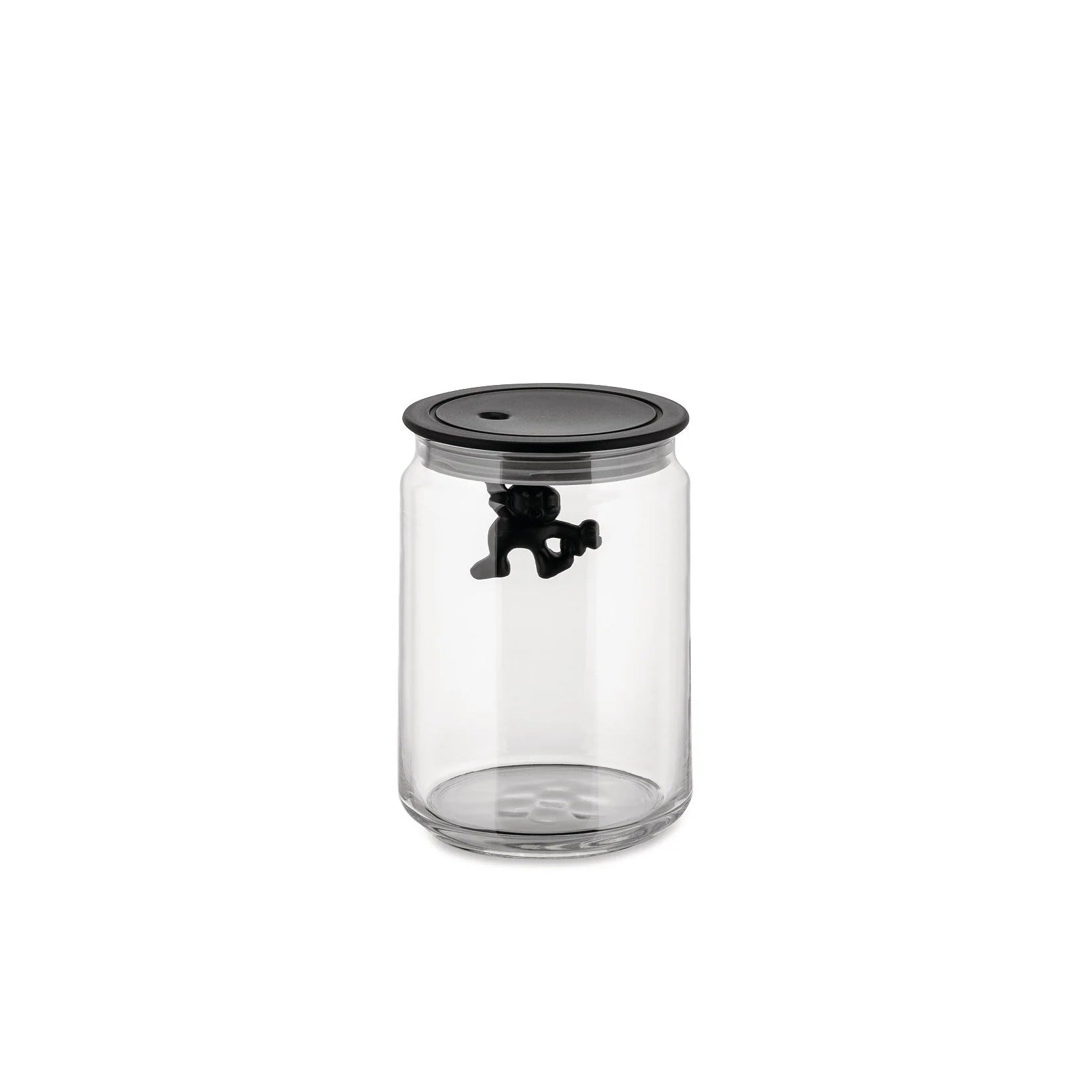 Contenedor AMDR Contenedor tubular de vidrio con tapa hermética de resina termoplástica, color negro. Medidas H15 cm, ø 10,5 cm. Capacidad 90 cl.