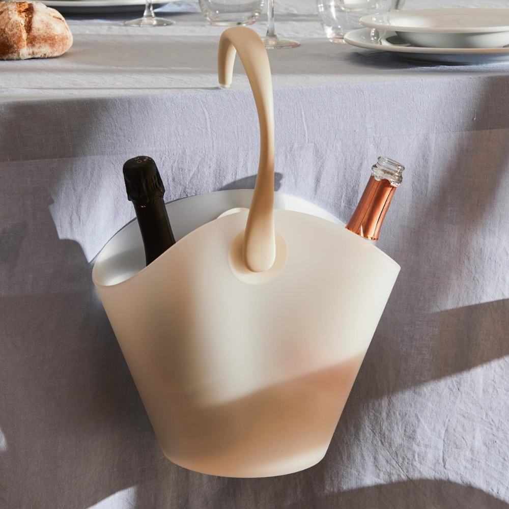 Cubo para botellas en resina termoplástica, color blanco hielo. Se puede auto-sostener en una mesa. Capacidad para 4 Lt.