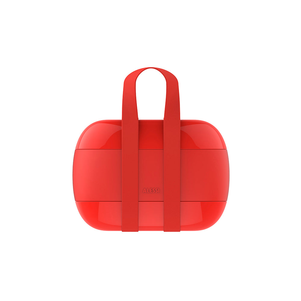 Lunch box con tres compartimentos en resina termoplástica, color rojo. Capacidad 125 cl, medidas 10,0xH13,5 cm. Diseñado por Sakura Adachi