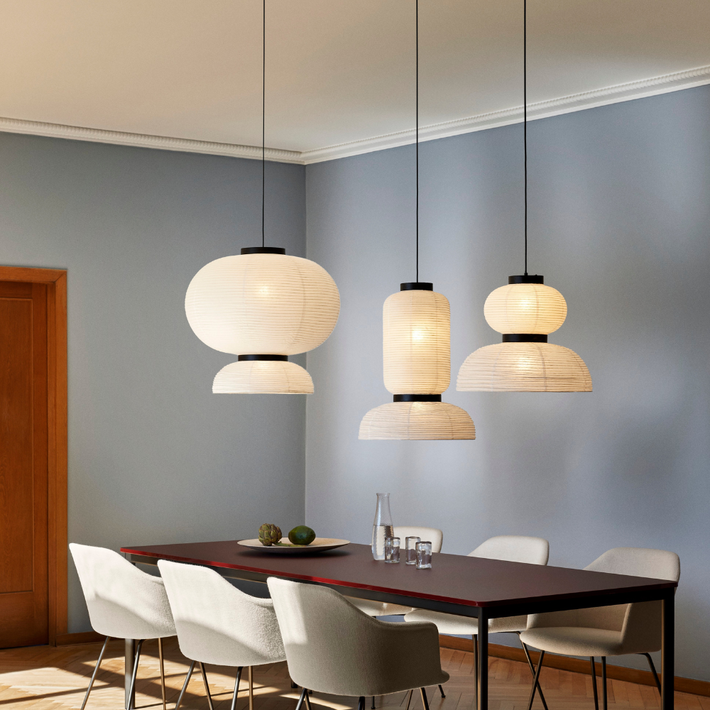 Diseñada por Jaime Hayon, la lámpara colgante Formakami JH3 combina la esencia del diseño asiático con la simplicidad del minimalismo escandinavo. Elaborada artesanalmente en papel, su forma ligera y volumétrica se realza con la presencia cálida del roble teñido en negro, creando una composición visual equilibrada y atemporal.