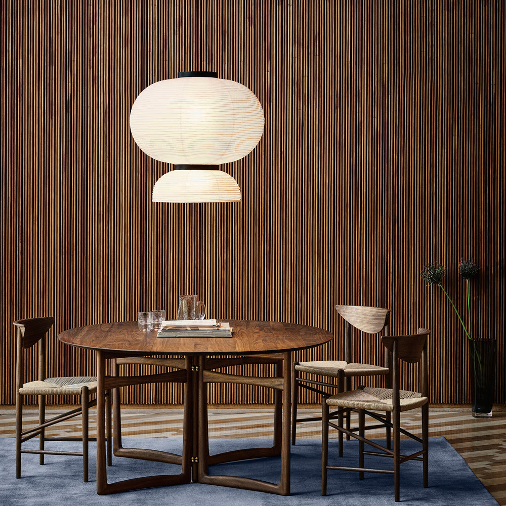 Diseñada por Jaime Hayon, la lámpara colgante Formakami JH5 combina la esencia del diseño asiático con la simplicidad del minimalismo escandinavo. Elaborada artesanalmente en papel, su forma ligera y volumétrica se realza con la presencia cálida del roble teñido en negro, creando una composición visual equilibrada y atemporal.