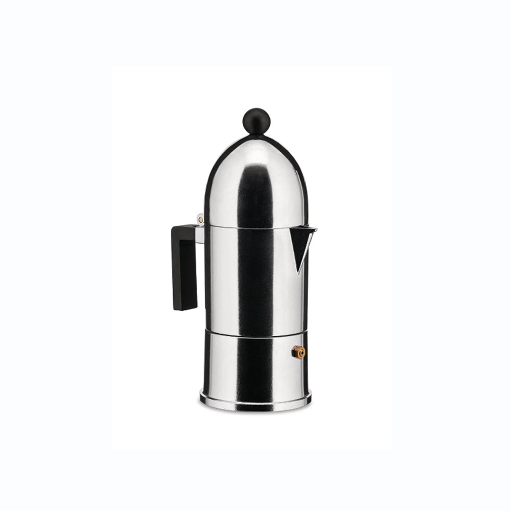 Diseñada por Aldo Rossi en 1988, la cafetera La Cupola es uno de los íconos más reconocibles de Alessi. Su silueta arquitectónica, coronada por una cúpula, traduce el lenguaje posmoderno de Rossi en un objeto doméstico de uso diario. Una moka escultórica que convierte la preparación del café en un gesto ritual.
