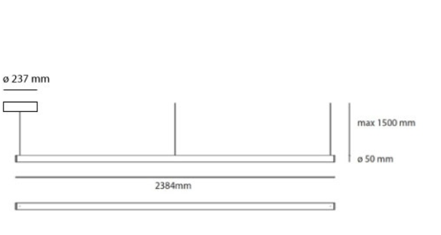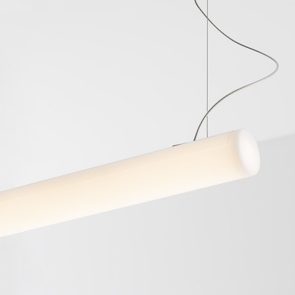 Lámpara de suspensión con luz difusa. Led 63W 6968lm 3000K, CRI>80, dimable Push/DALI, largo 238 cm, color blanco.
