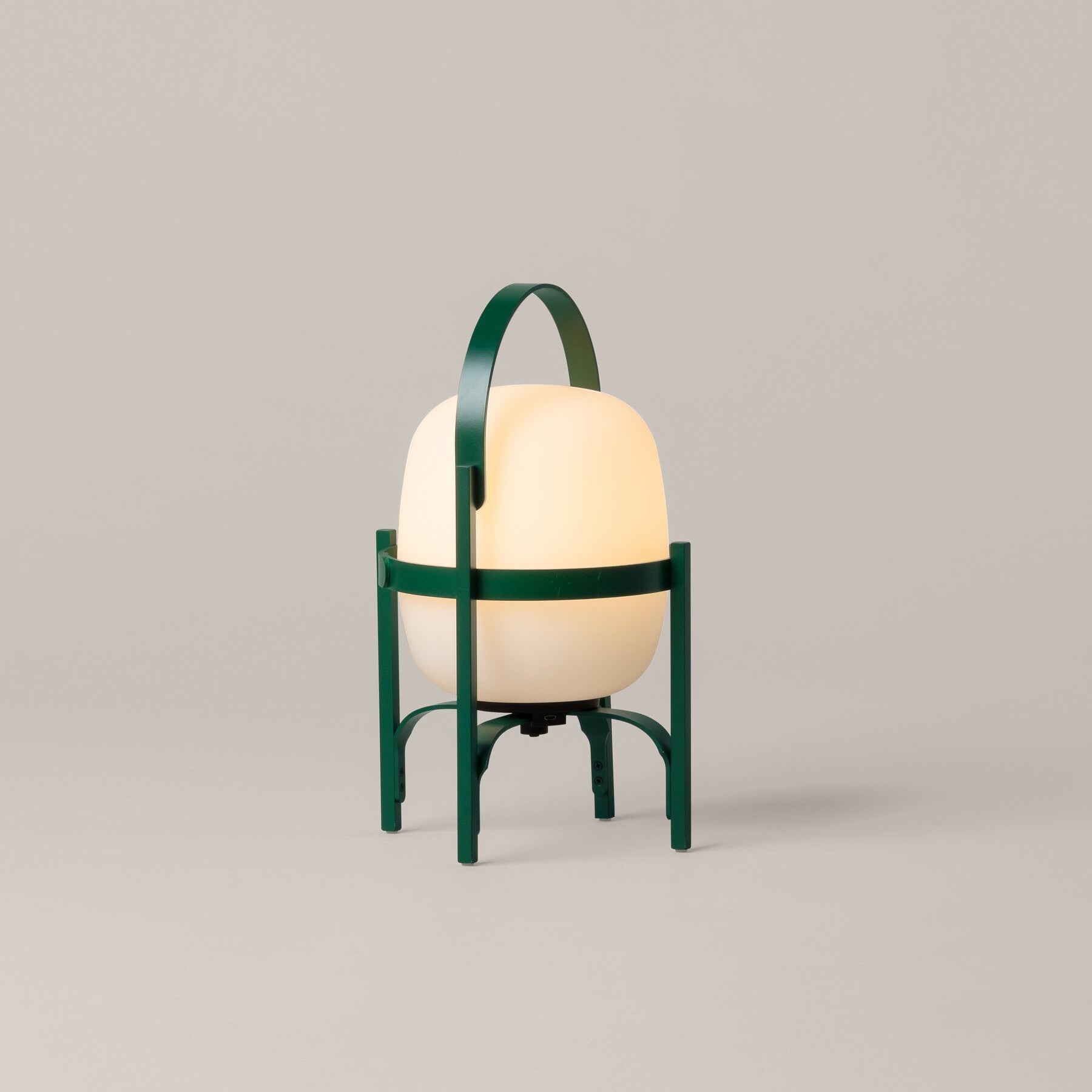 Diseñador: Miguel MiláDiseñada en 2020 por Miguel Milá para Santa & Cole, Cestita Alubat es la versión más resistente de la emblemática familia Cesta. En su acabado verde inglés, combina la robustez del aluminio con la delicadeza de la pantalla opal, logrando una lámpara sólida y ligera a la vez. Portátil y autónoma, está pensada para acompañar espacios interiores y exteriores con una luz cálida y regulable.