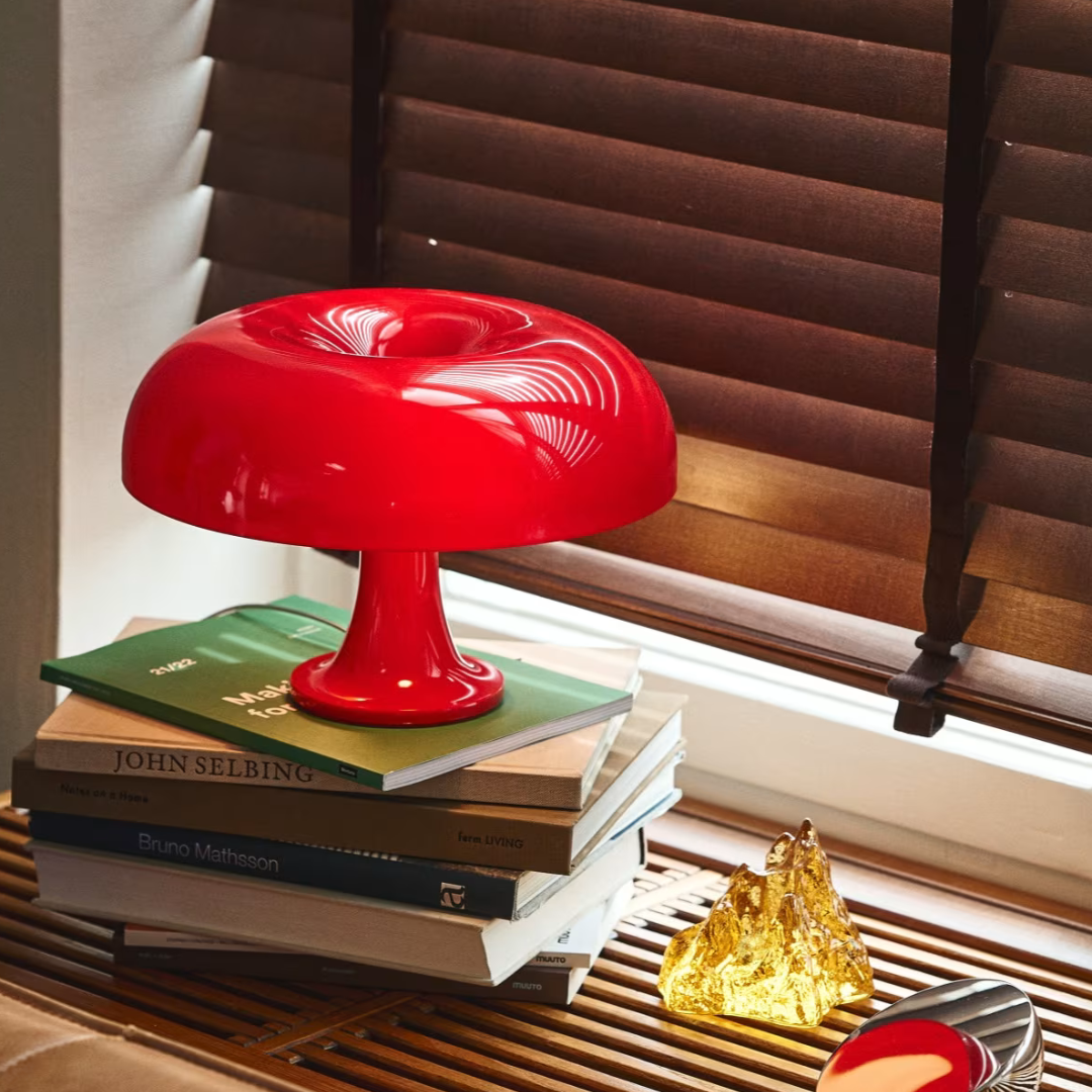 Fabricada en policarbonato, la Nessino reinterpreta la lámpara de mesa clásica con una silueta futurista y un carácter lúdico que trasciende el tiempo. Disponible en una vibrante paleta de colores y en ediciones especiales, esta luminaria sigue iluminando los interiores contemporáneos con la misma vitalidad que la hizo un referente del diseño moderno.