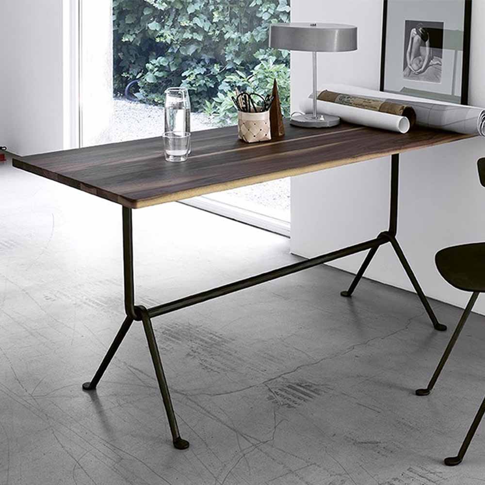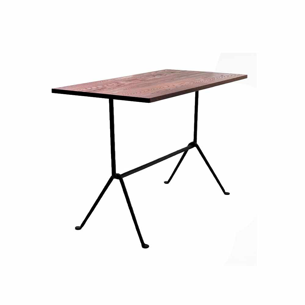 Mesa tipo bistrot con estructura en acero galvanizado negro y cubierta en nogal americano. 120x60xH72 cms.