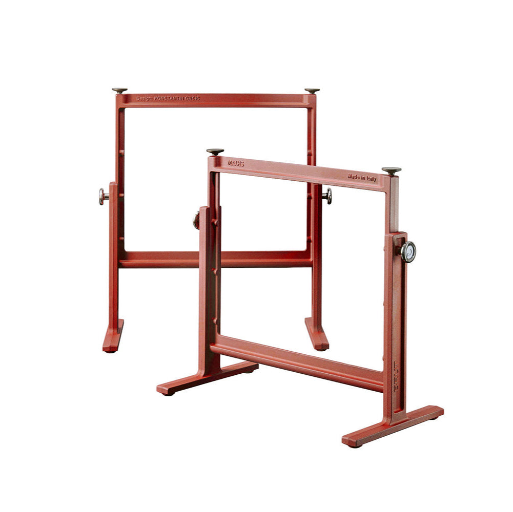 Par de caballetes regulables en altura, de hierro fundido con pintura en polvo de poliéster, un acabado resistente y de alta calidad, ideal para muebles metálicos.