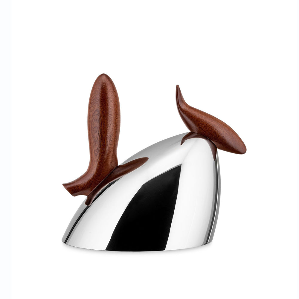 Hervidor de agua en acero inoxidable 18/10 con mango y tapa en caoba y silbato melódico. Capacidad 180 cl