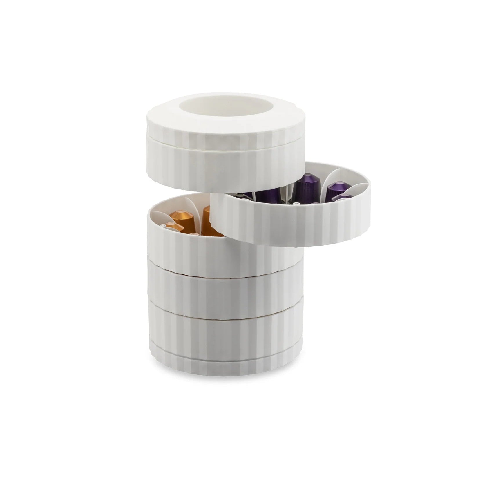 Un accesorio indispensable para tener siempre a mano y ordenadas las cápsulas de café. Este práctico contenedor parece la maqueta de un edificio moderno y no deja lugar a dudas sobre su creador: Michele De Lucchi.