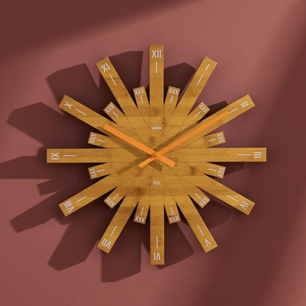Reloj mural en madera de bambú. Diámetro 48 cm