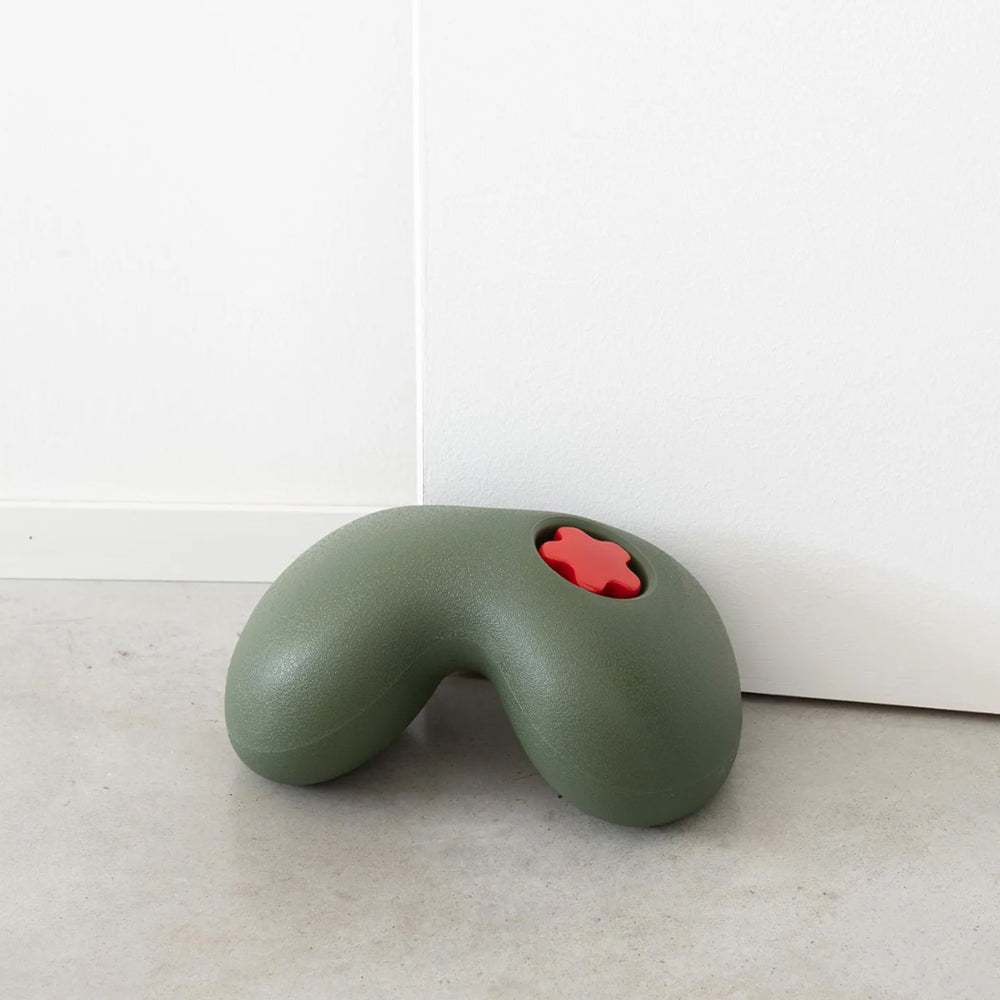 Sujetador de puerta para llenar con agua o arena en polietileno color verde. Diseño de Marc Newson.