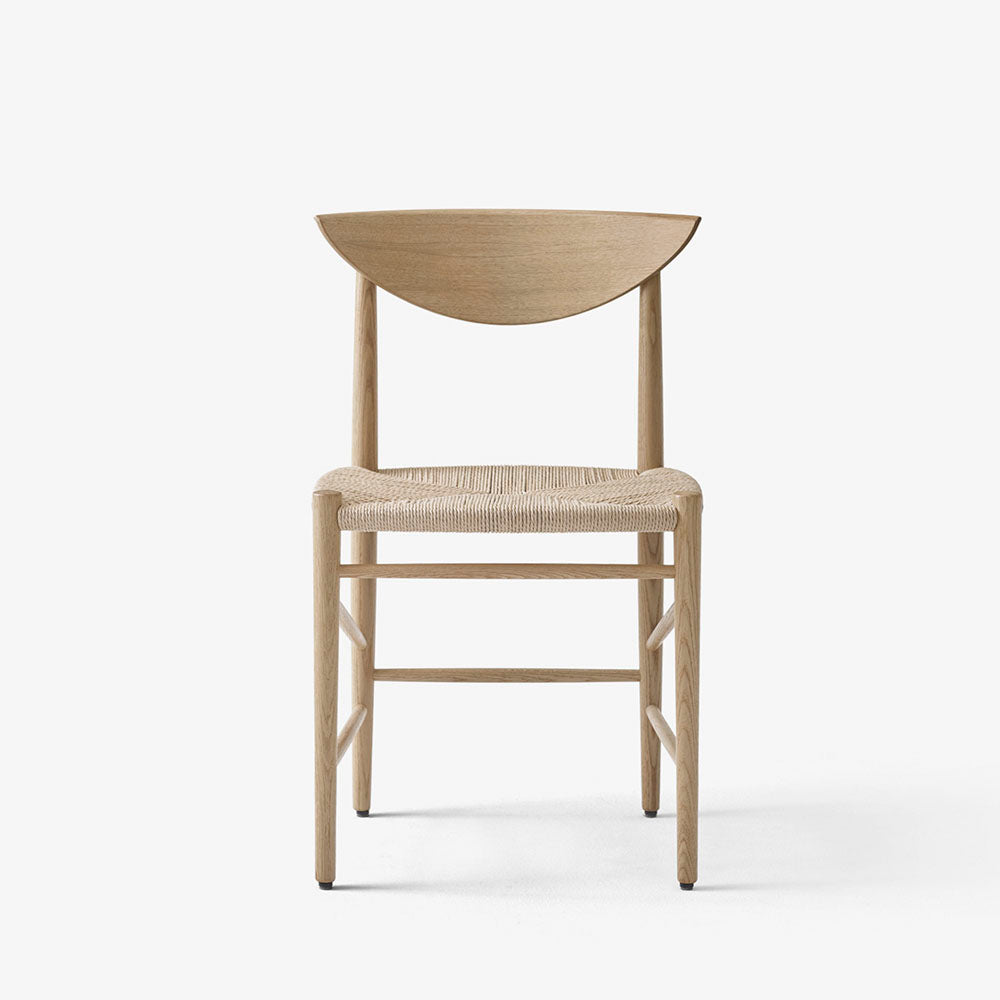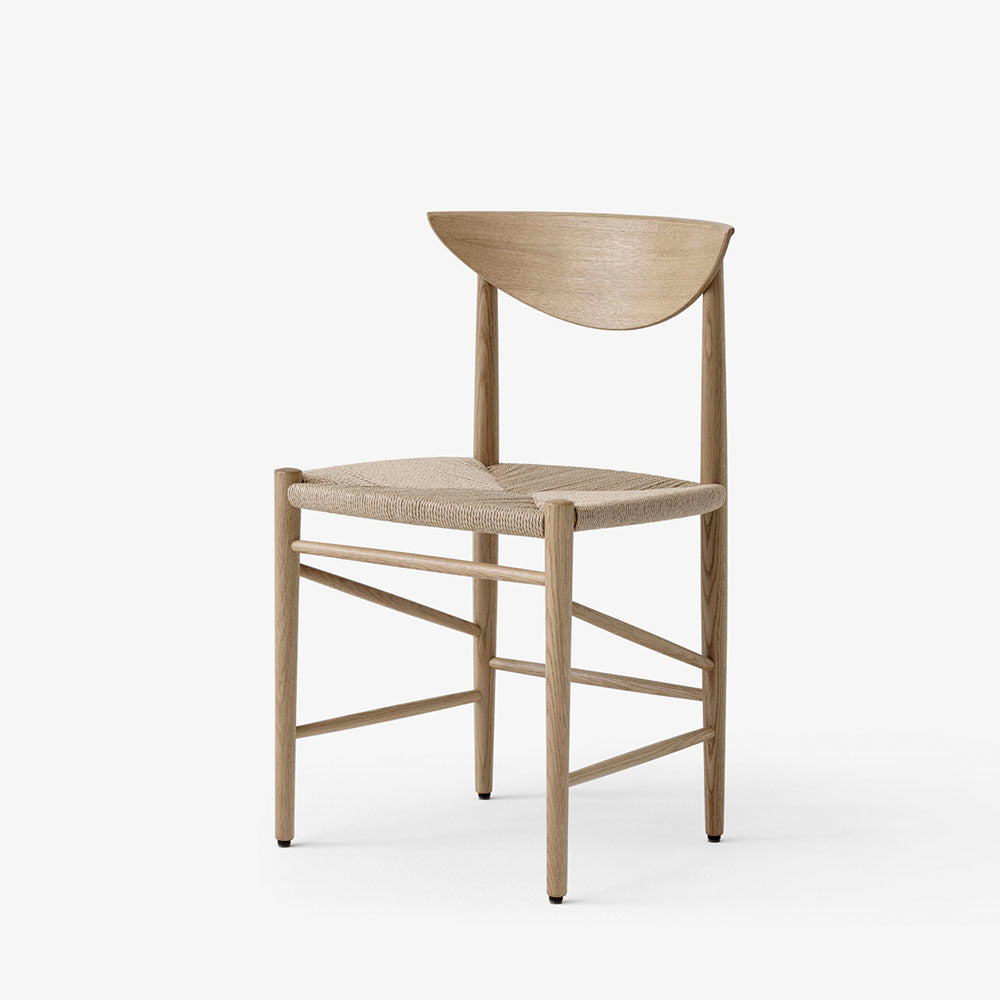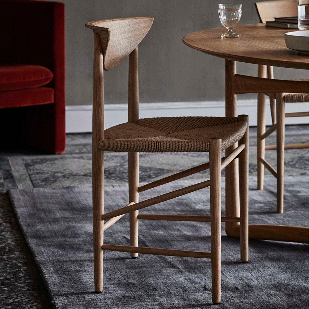 Silla en madera de roble tratado al aceite blanqueado y asiento en papel natural. Diseño de Hvidt & Mølgaard de 1956.
