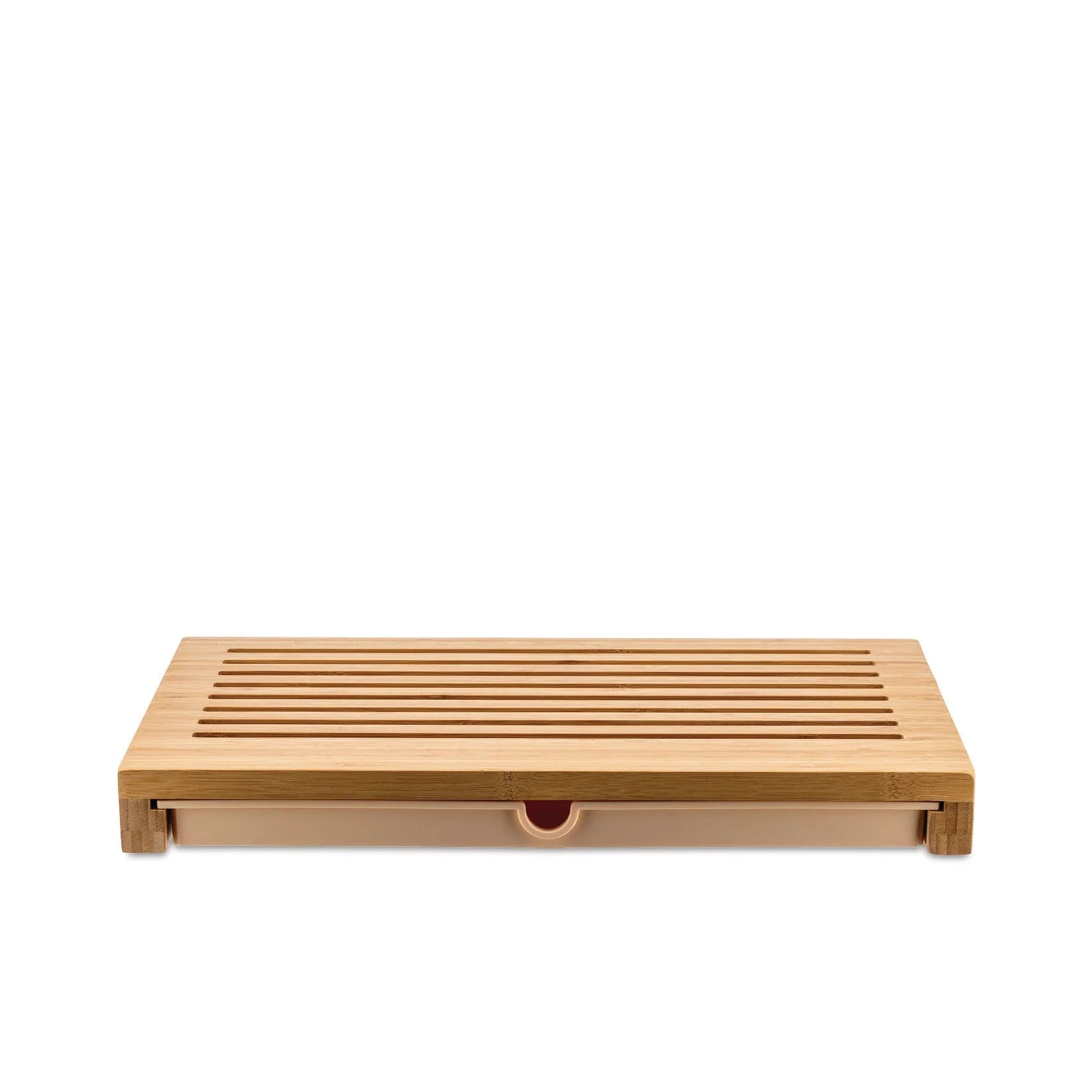 La tabla Sbriciola, diseñada por Anna y Gian Franco Gasparini para Alessi, está pensada específicamente para acompañar el gesto cotidiano de cortar pan. Sus ranuras superiores permiten que las migas caigan hacia un contenedor inferior, manteniendo la mesa limpia y haciendo del uso algo más cómodo y ordenado. Una pieza funcional, sencilla y bien resuelta para la cocina diaria.