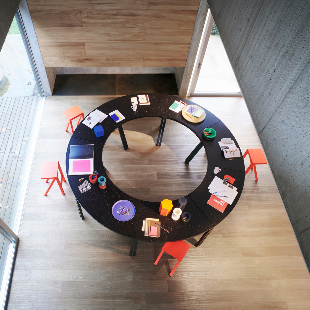 Diseñados por Jerszy Seymour, los taburetes Bureaurama responden a la idea de un entorno en constante cambio: espacios compartidos, configurables y en movimiento. Su silueta gráfica y líneas esenciales rompen con la monotonía y aportan ligereza a cualquier ambiente de trabajo o encuentro.