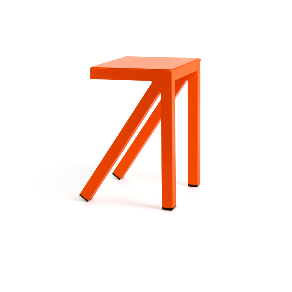 Fabricados en aluminio barnizado con pintura poliéster, combinan una estética simple con una estructura técnica de alta precisión. El material, completamente reciclable, les otorga durabilidad y los hace aptos para su uso en exteriores. El resultado es una pieza ligera, resistente y con presencia, pensada para integrarse en contextos que favorecen nuevas ideas y formas de habitar.