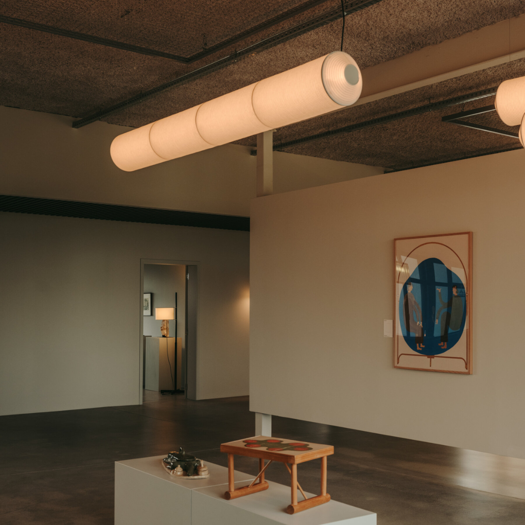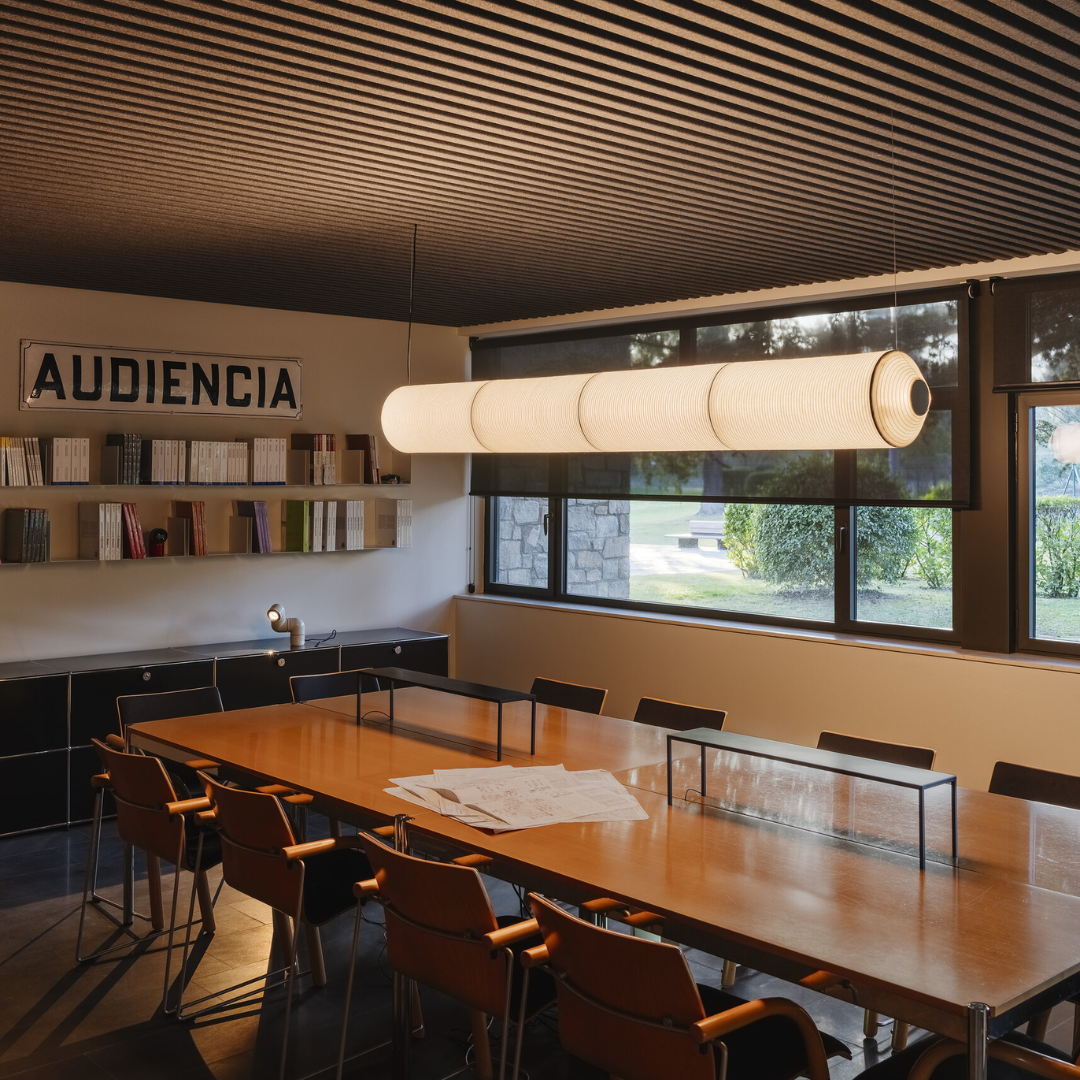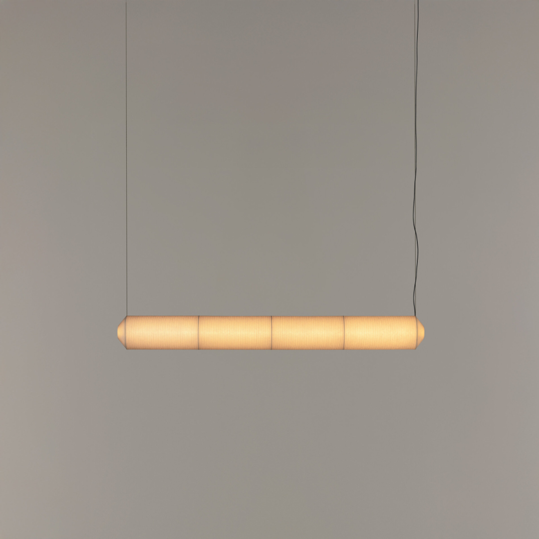 Tekiò Horizontal es una solución elegante para vestir superficies planas —como una mesa— o trazar recorridos luminosos en espacios abiertos. La combinación de papel Washi japonés y estructura metalizada produce una luz cálida, uniforme y refinada, ideal para ambientes residenciales y proyectos de hospitalidad.