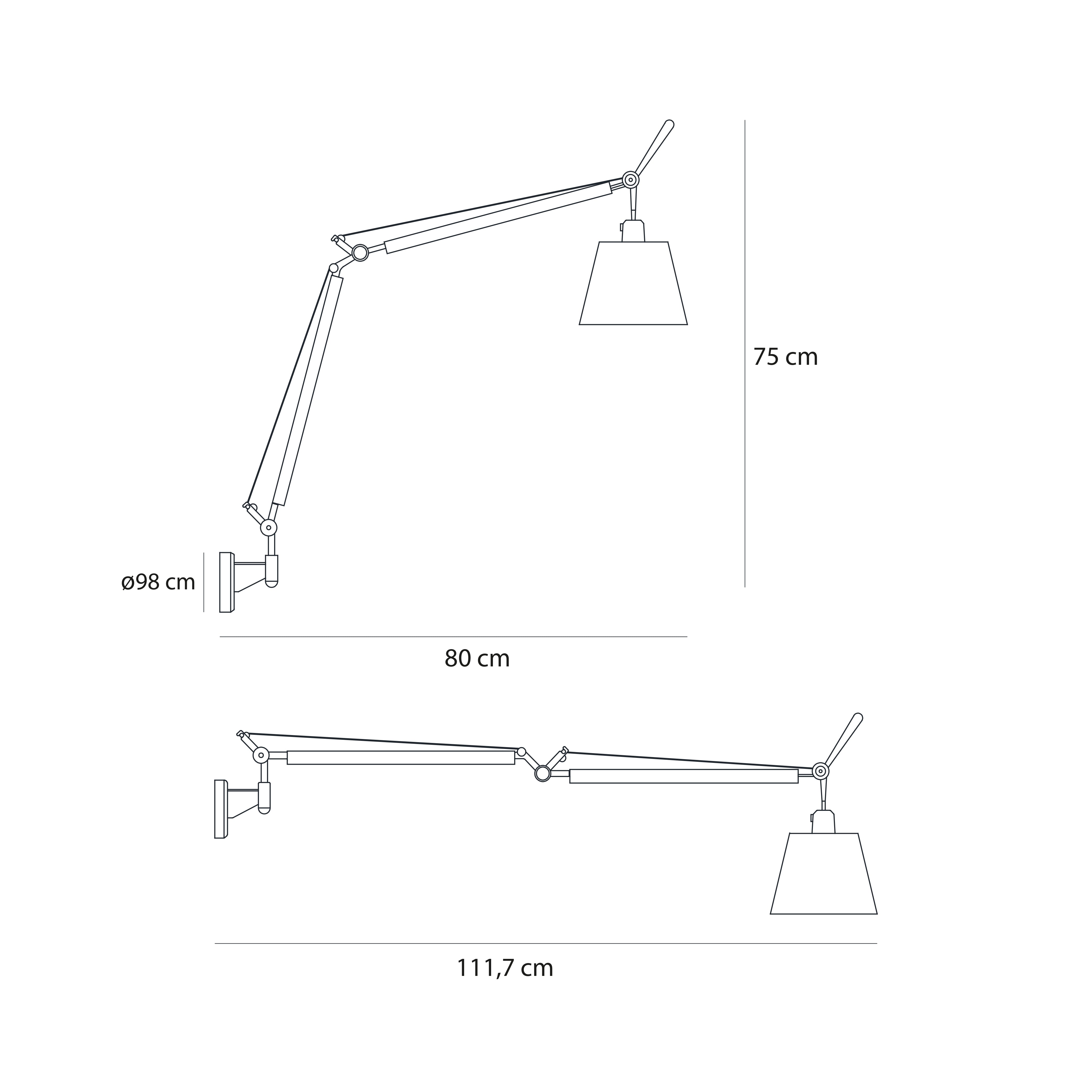En la versión basculante, la icónica Tolomeo mantiene el sistema de brazos y resortes que permite mover la luz en cualquier posición con facilidad, pero sustituye la cabeza de aluminio por un difusor equilibrado que ilumina suavemente todo el entorno.