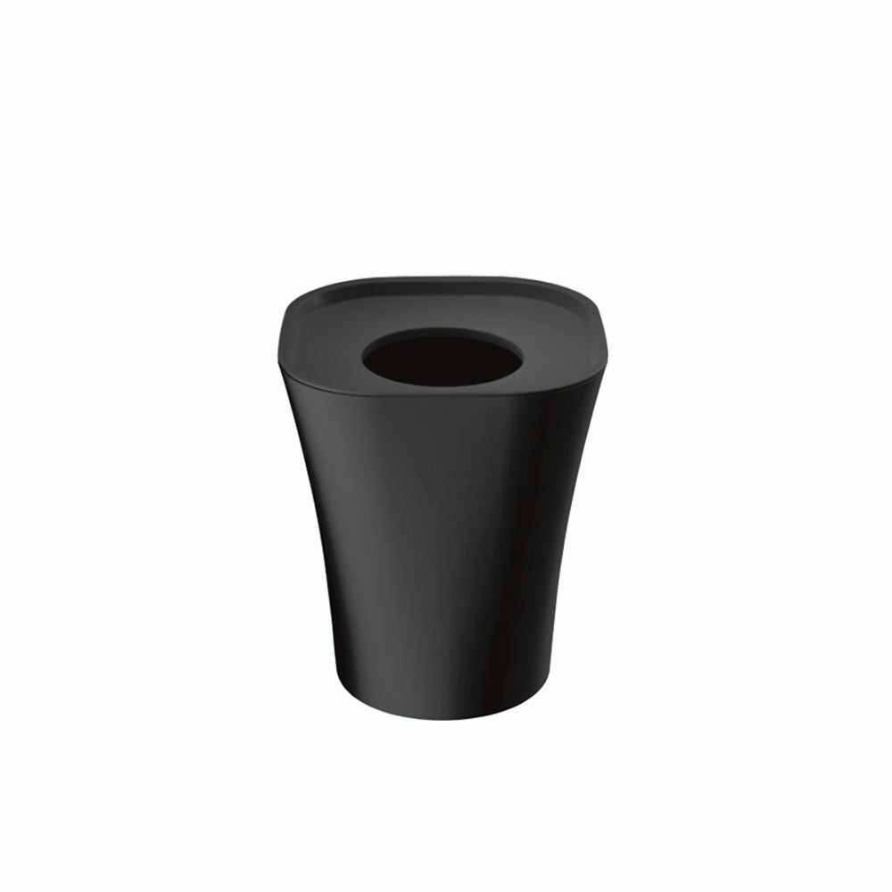 Papelero chico en polipropileno con tapa y sujeción para bolsa interior. Color negro. Diámetro base 17 cm, H 28 cm, Diámetro tapa 24 cm