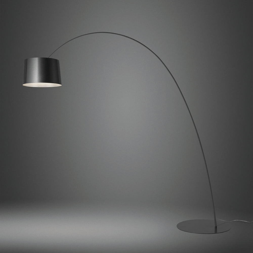 Lámpara de pie con base circular y vástago tipo arco. Color Grafito. 3x77W Halo ECO E-27 (no incluidas). IP 20.
